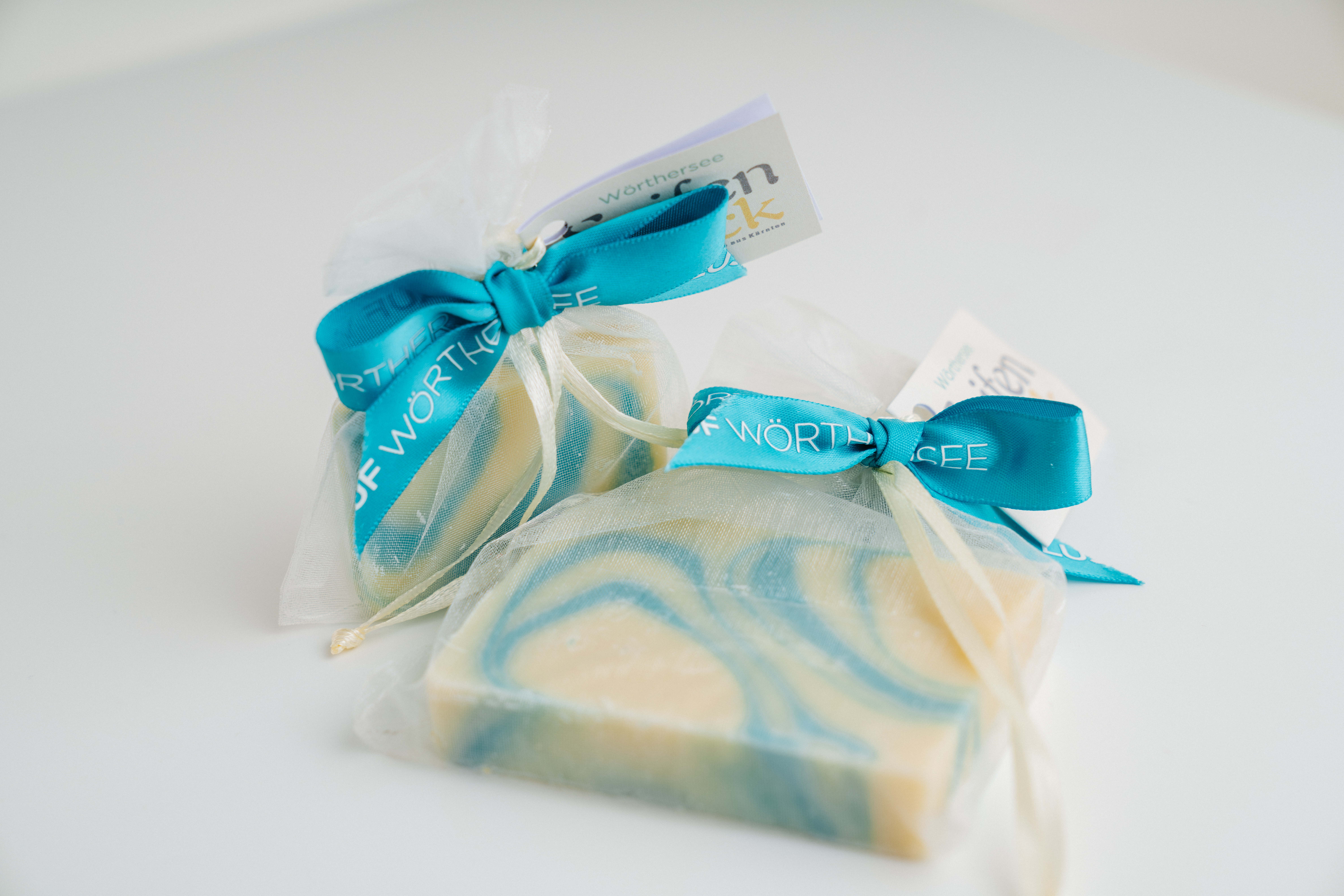 Die herrliche duftende Wörthersee Seife mit pflegenden Pflanzenölen und hautverwöhnender Milch lässt Erinnerungen an den letzten Kärnten-Urlaub wieder aufleben! Die charakteristische weiß-blaue Marmorierung der handgefertigen Seifen macht sie zu absoluten Unikaten.