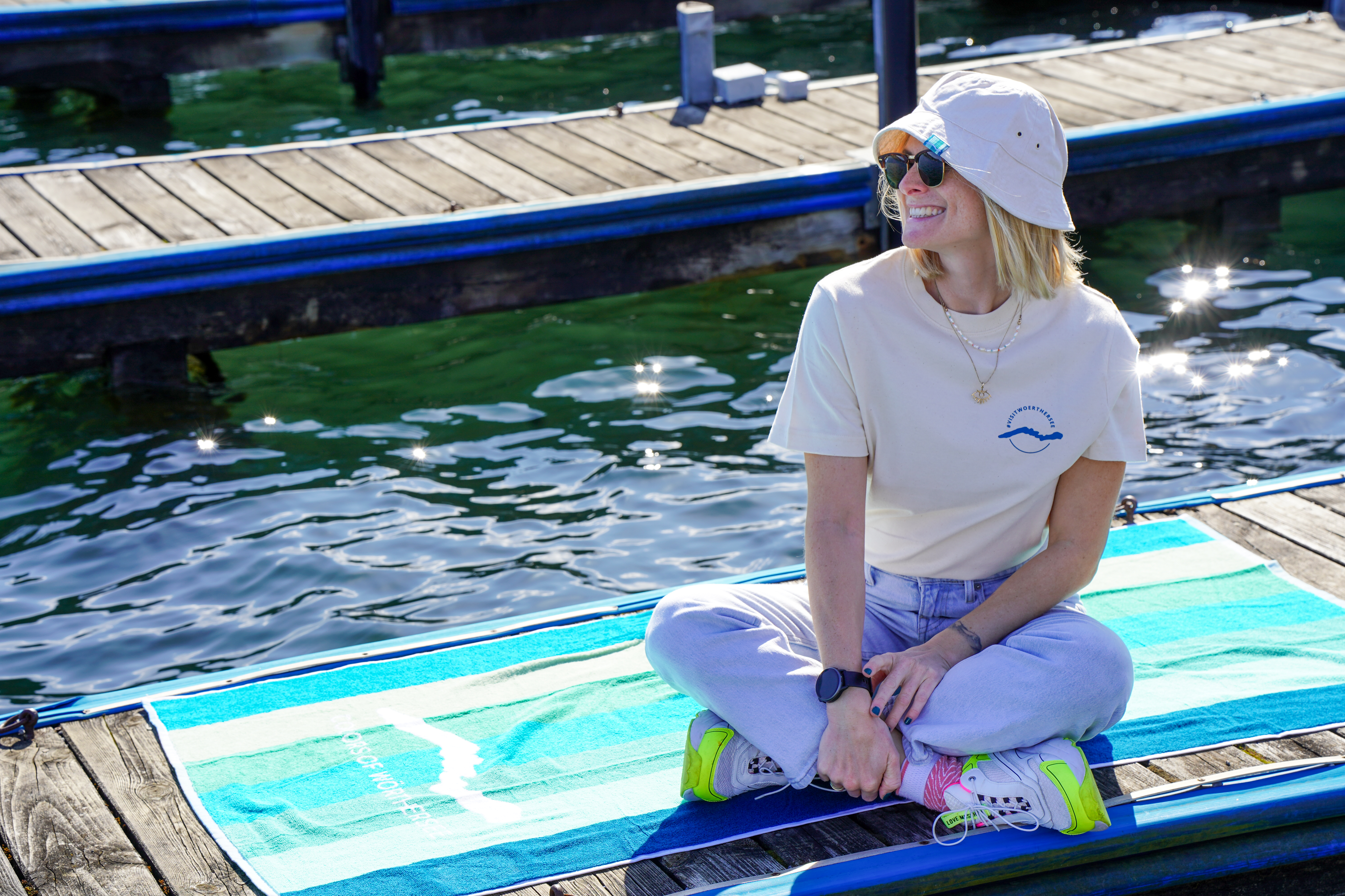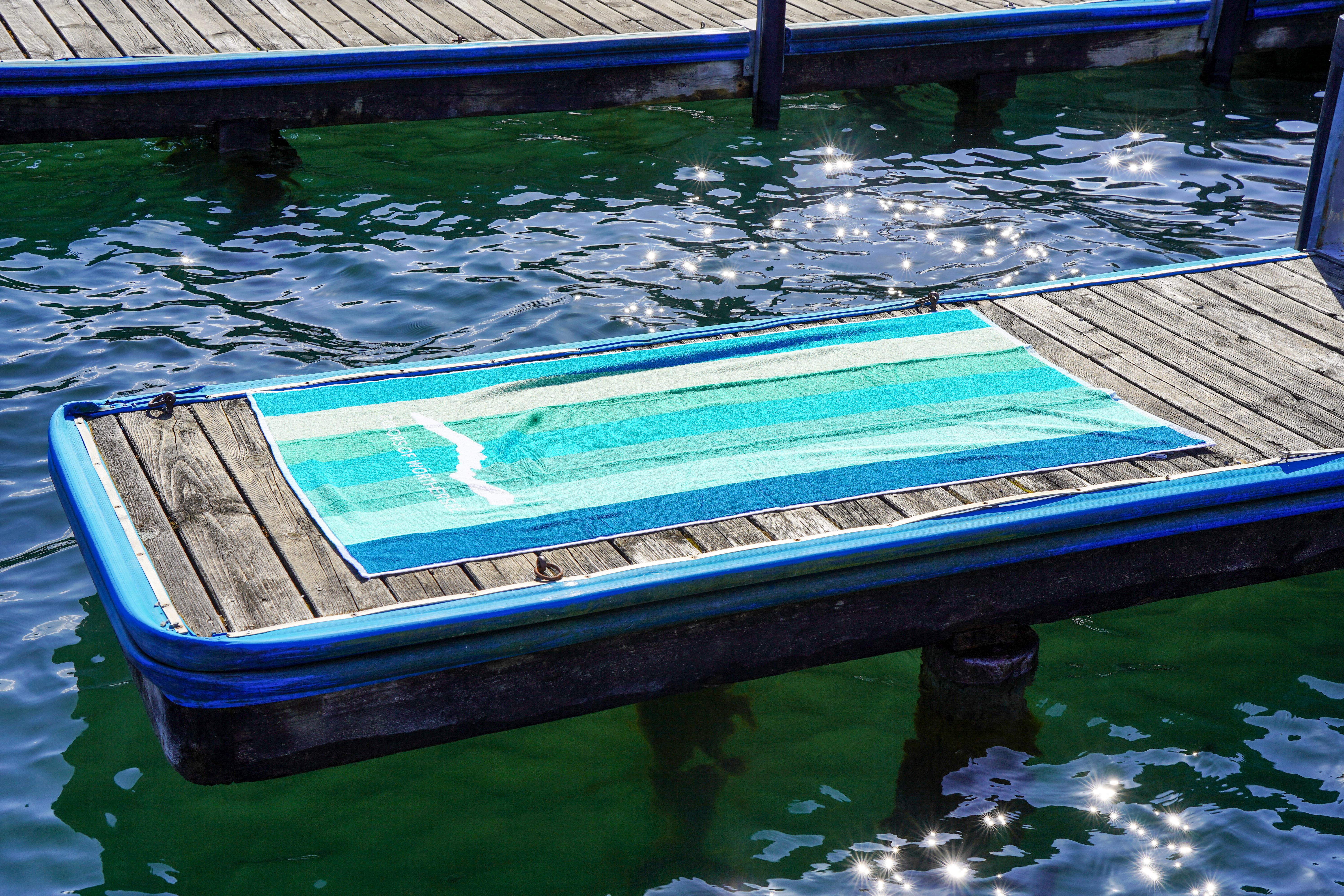 Mit dem 2-farbigen Strandtuch lässt es sich gut am Badestrand aushalten! Aus 100% Baumwolle, mit "Wörthersee" Motiv.